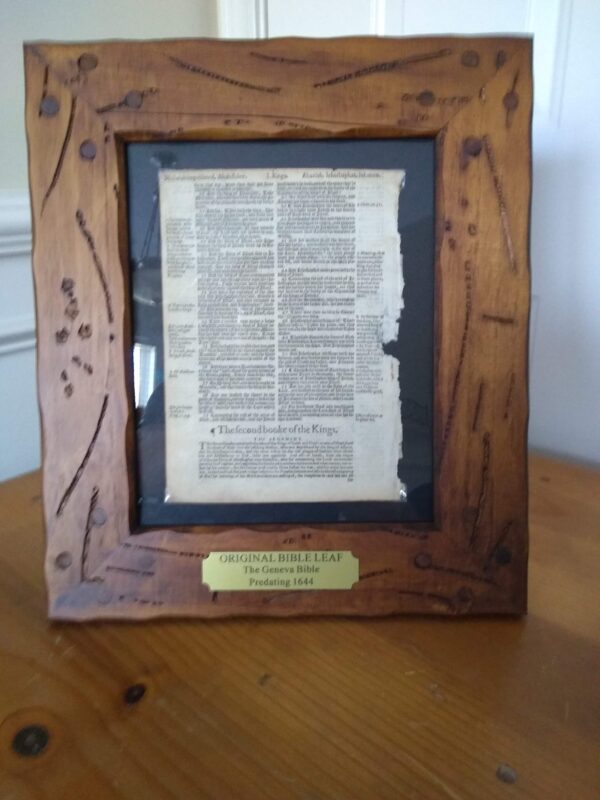 Framed Original 1600s Geneva Bible Page: Collectible Ancient Bible Art