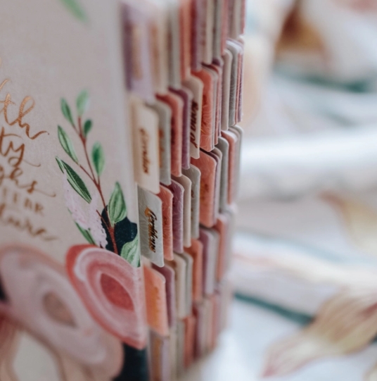 The Pastel Bible Tabs have double-sided gold foil lettering. Each set includes one tab for each book of the Bible plus 23 additional sticker tabs. Every tab includes an adhesive backing so you can easily apply them to your Bible pages with no extra supplies.